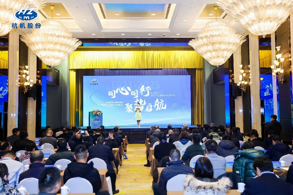 2025年1月9日上午,以“同心同行·聚勢(shì)啟航”為主題的杭機(jī)股份2025年全國(guó)經(jīng)銷(xiāo)商交流大會(huì)在浙江杭州隆重召開(kāi)。